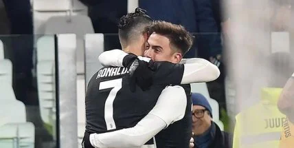 Роналду и Дибала случайно поцеловались, празднуя гол «Ювентуса».