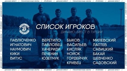 Динамо-Брест на своем официальном сайте опубликовал список игроков, которые отправятся на предсезонный сбор в Турцию. Украинцы Евгений Хачериди, Александр Нойок и Артем Милевский будут участвовать в данном сборе.
