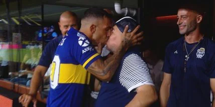 Карлос не просто приобнял тренера, а и поцеловал его. Стоит отметить, когда Марадона тренировал сборную форвард был у него одним из лидеров коллектива.