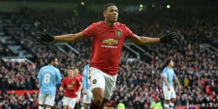 В матче 29-го тура чемпионата Англии "Манчестер Юнайтед" обыграл "Манчестер Сити" со счётом 2:0.