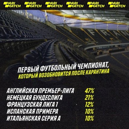 Лидером является Англия: Parimatch оценивает шансы АПЛ возобновить матчи первой в 47%. Второе место у Бундеслиги – 21%.