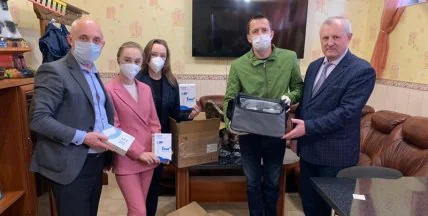 "Центру первичной медико-санитарной помощи" Волочиского городского совета передали защитные комбинезоны, респираторы, пирометры, бактерицидные лампы и бактерицидные облучатели, хирургические халаты, средства дезинфекции.