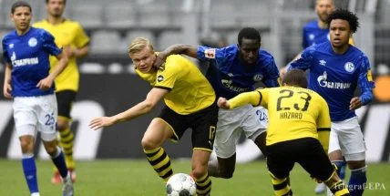 Футбольный чемпионат Германии (Бундеслига) первым в Европе вернулся после вынужденной паузы из-за пандемии коронавируса. В центральном матче 26-го тура чемпионата Бундеслиги "Боруссия" (Дортмунд) разгромила на своем поле "Шальке" 4:0.