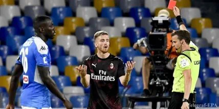 Во втором тайме команды обменялись голами, а Милан в концовке матча остался вдесятером.