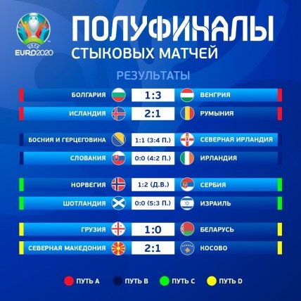 Результаты полуфинальных стыковых матчей отбора на Евро-2020: