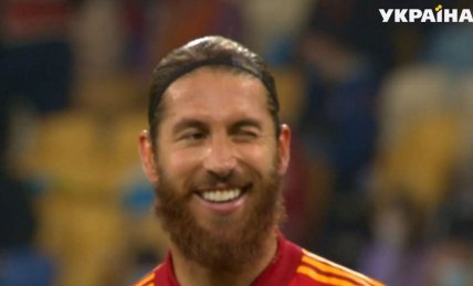 Рамос подмигнул Бущану после блестящего сейва украинского вратаря в матче Украина - Испания