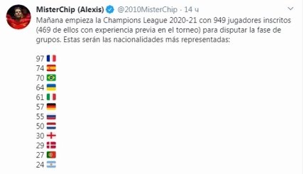 Уже сегодня, 20 октября, стартует групповой этап Лиги чемпионов УЕФА сезона 2020/21. MisterChip подсчитал представительство национальностей футболистов в еврокубке и Украина весьма неожиданно заняла в своеобразном топе высокое 4-е место.