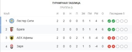 Это поражение отбросило Зарю на последнее место в группе G. Лестер Сити и Брага - лидеры квартета. В следующем туре Заря примет АЕК, а Брага отправится в гости к Лестеру. Оба поединка пройдут 5-го ноября.