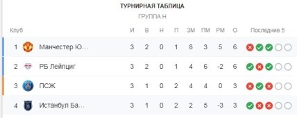Несмотря на поражение, МЮ сохранил за собой первую позицию в квартете H, набрав столько же очков, сколько и РБ Лейпциг. У ПСЖ и Истанбула по три балла.
