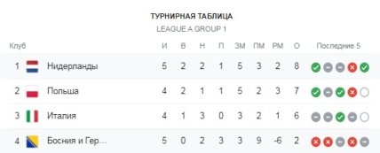 Эта победа подняла Нидерланды на 1-е место в квартете 1 Лиги А, однако Польша и Италия вскоре могут потеснить оттуда Оранжевых.