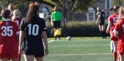 Футболистка, подавая стандарт, оформила шикарное взятие ворот.