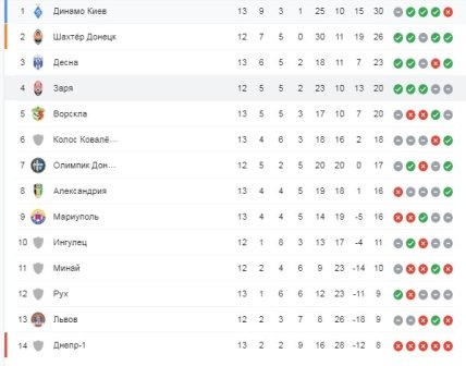 В итоге в чемпионате Украины 2020/21 были сыграны практически все матчи первого круга (часть игр переносилась из-за вспышек коронавируса, а игра Ингулец - Шахтер - из-за непогоды, - прим. ред.). Клубы отправились на перерыв, который будет длиться два месяца, Лидером первенства после первой половины чемпионата является Динамо, опережающее донецкий Шахтер на 4 очка, правда, у Горняков есть игра в запасе. Десна, выигравшая свой поединок 13-го тура, занимает третью строчку. Аутсайдером лиги стал Днепр-1, умудрившийся разгромно проиграть Руху.
