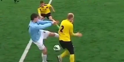 В Эстонии обезумевший футболист с ноги ударил соперника, а затем добил его мячом (видео)