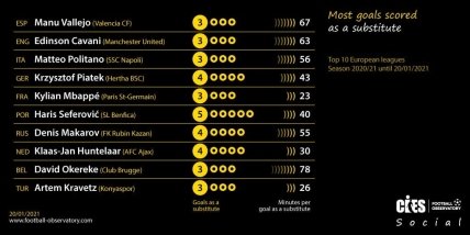 Украинский нападающий турецкого Коньяспора Артем Кравец весьма удачно выходит на замену. Об этом сообщает международный центр спортивных исследований CIES Football Observatory.