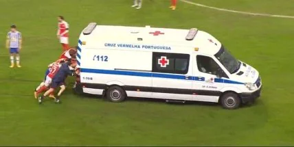 В Португалии машина скорой помощи заглохла посреди футбольного поля - толкали обе команды (видео)
