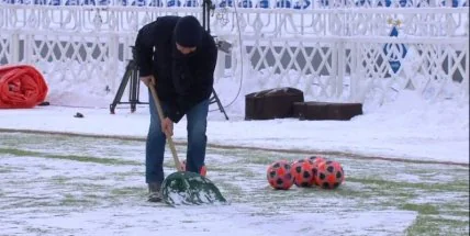 Главный тренер "Динамо" Мирча Луческу лично поучаствовал в уборке снега на газоне поля стадиона имени Лобановского.