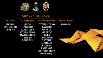 - Полузащитники: Тарас Степаненко, Тайсон, Маркос Антонио, Марлос, Тете, Манор Соломон, Алан Патрик, Майкон, Сергей Болбат, Георгий Судаков, Евгений Коноплянка, Фернандо.