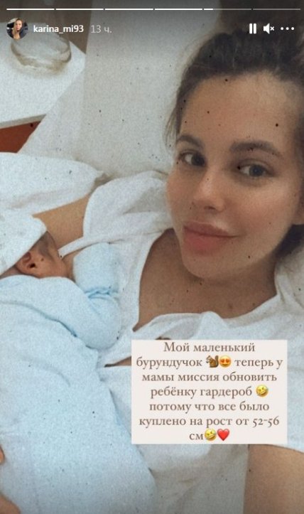 "Как же мы тебя ждали, наш сыночек. Благодарю всех за поздравления", - написала Карина, прикрепив совместную фотографию с сыном после родов.