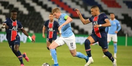 Бельгийский полузащитник "Манчестер Сити" Кевин Де Брейне сравнял счет в первом полуфинальном поединке Лиги чемпионов с ПСЖ.