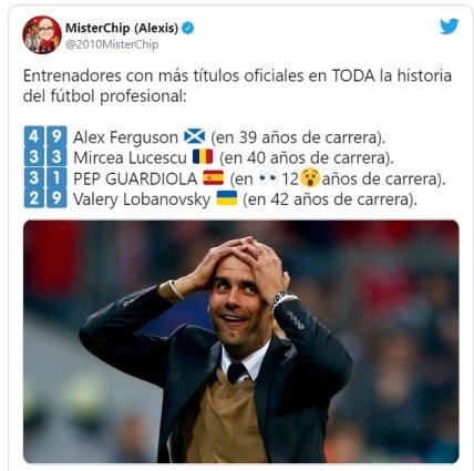 Луческу рассказал "динамовцам", как войти в историюГвардиола в списке самых титулованных тренеров в истории занимает третье место. Его опережают главный тренер "Динамо" Мирча Луческу (34 титула) и экс-наставник МЮ Алекс Фергюсон (49 трофеев). Четвертое место у легендарного украинского тренера Валерия Лобановского (29 титулов).