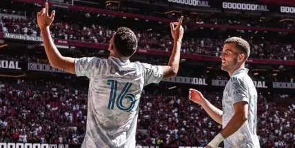 Футболист Рубин забил гол-бриллиант (видео)На 51-й минуте при счете 1:0 хозяева удвоили преимущество. Парагвайский нападающий "Атланты" Эрик Лопес выскочил из-за спин защитников и замкнул прострел партнера с левого фланга, при чем форвард пробил подошвой, находясь практически спиной к воротам. Получился гол-красавец, который тут же отметили в МЛС.