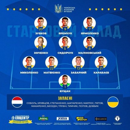 В воскресенье, 13 июня, сборная Украины начнет свой путь на Евро-2020 матчем с Нидерландами. Накануне матча стали известны стартовые составы команд.