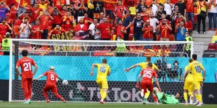 Эзган Алиоски сократил отставание в счете в матче Украина - Северная Македония.