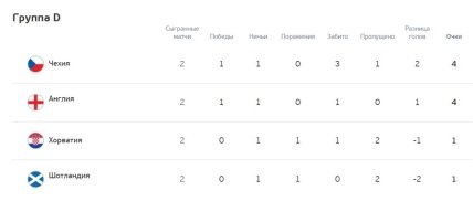 "Телеграф" напоминает, что в другом матче группы D Хорватия и Чехия поделили очки. Таким образом, англичане и чехи лидируют в группе, а шотландцы и хорваты пасут задних. В первом туре "Три льва" одолели хорватов, а шотландцы уступили сборной Чехии. Решающие игры в квартете D состоятся во вторник, 22 июня.