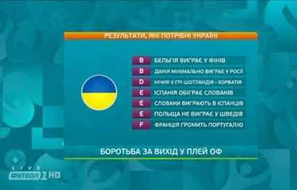 Варианты для выхода сборной Украины в плей-офф были представлены ТК "Футбол 1/2/3":