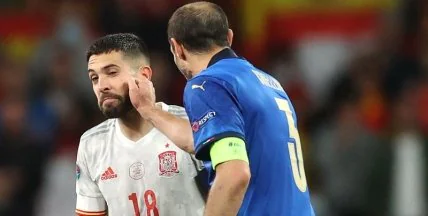 Легенду сборной Италии не пускали на поле, приняв за фаната: смешной момент попал на видеоПеред серией 11-метровых ударов капитаны команд Джорджо Кьеллини и Жорди Альба решали, в какие ворота будут бить, а также кто первым начнет серию. В этот момент центральный защитник "Адзурри" Кьеллини устроил настоящее шоу. Он по-доброму хватал соперника, "бил" того по плечу, а также кулаком "проверил" тому челюсть. В конце церемонии Джорджо крепко обнял Альбу. К слову, немецкий рефери Феликс Брых никак не отреагировал на такое поведение итальянца.