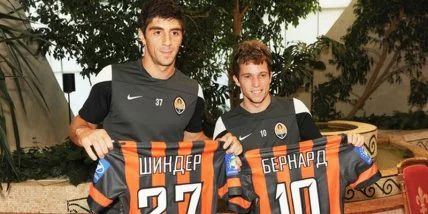 Первым делом наставник «Шахтера» Мирча Луческу вручил новичкам игровые футболки «горняков». Бразилец Бернард будет выступать под 10-м номером, а украинец Шиндер – под 37-м. А затем футболисты ответили на вопросы представителей СМИ.