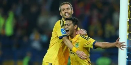 Харьковский "Металлист" празднует победу над киевским "Динамо"
