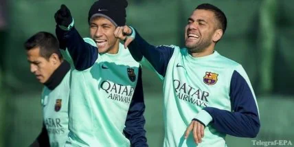 "Барселона": Пинто, Дани Алвеш, Пике, Маскерано, Альба, Бускетс, Хави, Иньеста, Алексис, Неймар, Сеск.