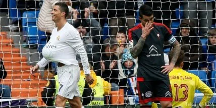 Мадридский Реал добыл сокрушительную победу над "Сельтой" в рамках 28-го тура чемпионата Испании. Лидер Сливочных Криштиану Роналду отметился покером. "Телеграф Спорт" предлагает вашему вниманию фотоотчет этой игры. <br> <br>