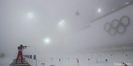 Сегодня биатлонисты так и не смогут выйти на трассу из-за сильного тумана.