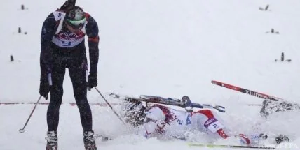 И добежал норвежец Эмиль Свендсен до "золота" Олимпиады. Второе место у француза Мартена Фуркада в массовом старте.