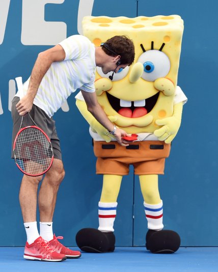 Федерер и Спанч Боб на разминке в Брисбене