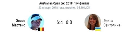 Таким образом, Элиза Мертенс одержала сенсационную победу, став первой полуфиналисткой Australian Open 2018, а Элина Свитолина, увы, покидает турнир.