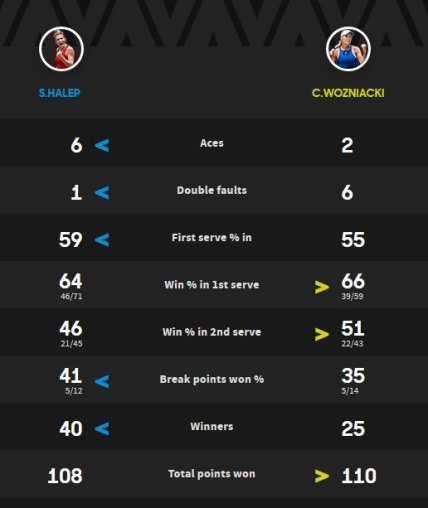 На тайбрейке Возняцки вновь удалось заманить Халеп в свои сетки – у Каролин вновь прорезалась первая подача, Симона же не смогла избежать невынужденных ошибок и без шансов отдала решающий гейм сета.