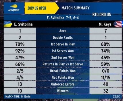 Элина Свитолина (Украина) – Мэдисон Киз (США) – 7:5, 6:4