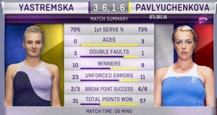 Ястремская слишком расслабленно подошла к матчу с первой ракеткой России и поплатилась за это. Первый сет подарил болельщикам равную игру вначале и провал Даяны во втором, как результат 6:3 в пользу Павлюченковой.