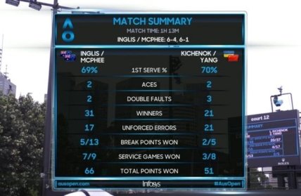 Обидчицами украинско-китайской пары стали теннисистки из Австралии Мэддисон Инглис и Кайла Макфи. Встреча завершилась в двух сетах.