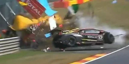 В субботу, 28 июля, во время скоростных гонок Super Trofeo в Бельгии на трассе Спа-Франкоршам произошла жуткая авария, которая каким-то чудом не привела к гибели людей.