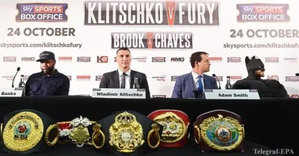 Британский тяжеловес Тайсон Фьюри в костюме Бэтмена пришел на пресс-конференцию перед поединком с чемпионом мира в супертяжелом весе по версиям IBF/IBO/WBA/WBO Владимиром Кличко, сообщает Sky Sports.