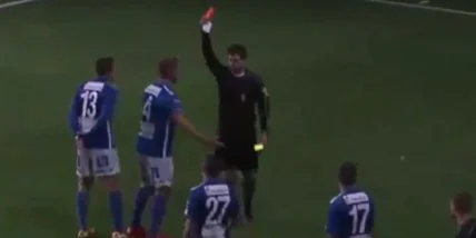 Защитник шведского клуба "Норби", Меди Дрешевич, схлопотал весьма глупое удаление сразу же после празднования забитого гола.
