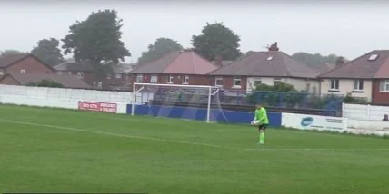 Вратарь Спеннимур Таун во время свободного удара в своей штрафной площади отправил мяч к чужим воротам, где круглый ударился об землю перед голкипером соперника и залетел ему за спину прямо в сетку ворот.