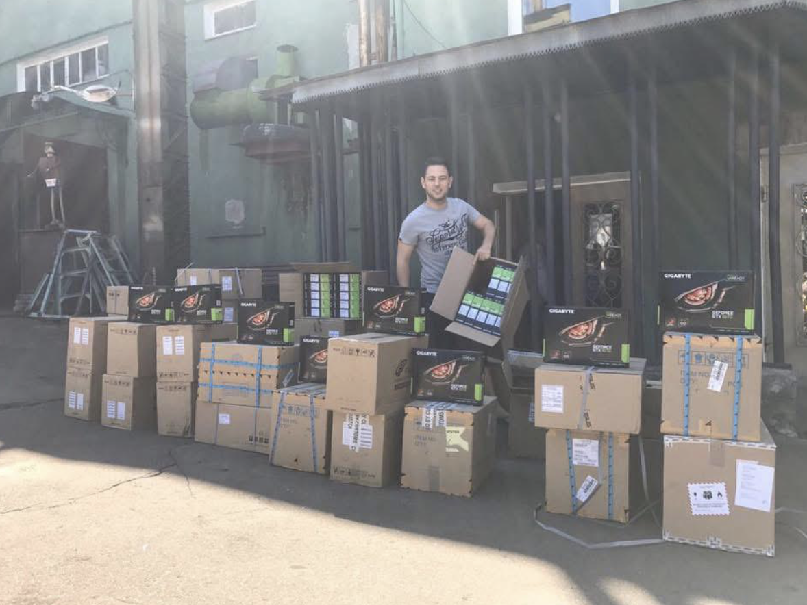 Уже через несколько месяцев ферма стабильно добывает криптовалюту, мощность достигла 2500 GPU. Это была одна из крупнейших майнинговых площадок в Украине, а затем и в восточно-европейском регионе. Команда самостоятельно занималась импортом "железа" из Франции, Германии, Италии, Китая и ОАЭ С, в связи с отсутствием институциональной поддержки, партии комплектующих доставлялись в Одессу в коробках десятками, это были видеокарты, блоки питания, материнские платы.