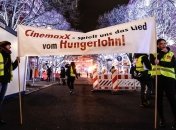 Свыше 100 работников немецких кинотеатров устроили митинг перед Берлинале Паласт, где проходит Берлинский международный кинофестиваль, требуя повышения зарплаты