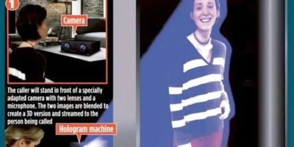 Так вот, с помощью новых телефонов, которые появятся уже в следующем году, ''голографическая фантастика'' превратится в реальность. Чтобы сделать 3D-звонок, нужно будет сесть перед специально оборудованной камерой с 2-мя линзами, которые будут передавать 2 изображения, и микрофоном. После смешивания этих изображений появится 3D-версия человека, и будет транслироваться через интернет. Таким образом, говорящая, двигающаяся и слушающая в режиме реального времени голограмма уже не будет фантастикой.