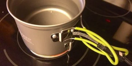 Кастрюля имеет объем 1.4 литра и поставляется с набором из чашки, миски и сковородки – так что вы можете полноценно готовить еду одновременно с зарядкой своей электроники. Поскольку после окончания готовки разница температур некоторое время сохраняется, PowerPot может подзаряжать гаджеты и после того, как его сняли с огня.